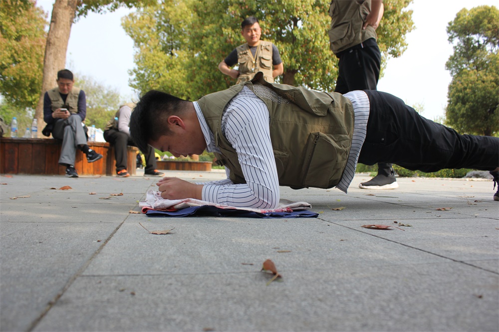 平板支撑接力,听这名字就好像很难的样子,每组七个人,三女四男,平板支撑时间合计最长的队伍取得胜利。这个动作是看身材吧,胖的人表示太难了,瘦的人感觉很容易,每人多坚持一二十秒,就可以超过其他组很厉害的人,当然最先开始队伍总是吃亏的。